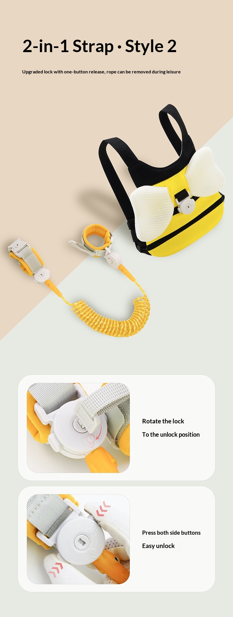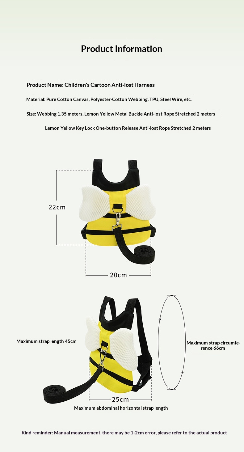 Colors: [Standard] Bee Sling + Webbing Strap (1.5m); [Dual-Use] Bee Sling + Lemon-Yellow Anti-Lost Rope + Webbing Strap (1.5m); [Bear Clip + Child-Lock Clip] Bee Sling + Twisted-Yellow Anti-Lost Rope; [Standard] Koala Sling + Webbing Strap; [Dual-Use] Koala Sling + Silver-White Anti-Lost Rope + Webbing Strap; [Bear Clip + Child-Lock Clip] Koala Sling + Silver-White Anti-Lost Rope; [Standard] Pink Butterfly Sling + Webbing Strap (1.5m); [Dual-Use] Pink Butterfly Sling + Pink Anti-Lost Rope + Webbing Strap (1.5m); [Bear Clip + Child-Lock Clip] Pink Butterfly Sling + Pink Anti-Lost Rope; [Standard] Purple Butterfly Sling + Webbing Strap (1.5m); [Dual-Use] Purple Butterfly Sling + Purple Anti-Lost Rope + Webbing Strap (1.5m); [Bear Clip + Child-Lock Clip] Purple Butterfly Sling + Purple Anti-Lost Rope; [Standard] Small Bag Style – Bee + Webbing Strap (1.5m); [Dual-Use] Small Bag Style – Bee + Lemon-Yellow Anti-Lost Rope + Webbing Strap (1.5m); [Bear Clip + Child-Lock Clip] Small Bag Style – Bee + Twisted-Yellow Anti-Lost Rope; [Dual-Use Anti-Lost Rope] Anti-Lost Backpack – Bow-Tie Bear; [Dual-Use Anti-Lost Rope] Anti-Lost Backpack – Excavator; [Dual-Use Anti-Lost Rope] Anti-Lost Backpack – Gray Koala.